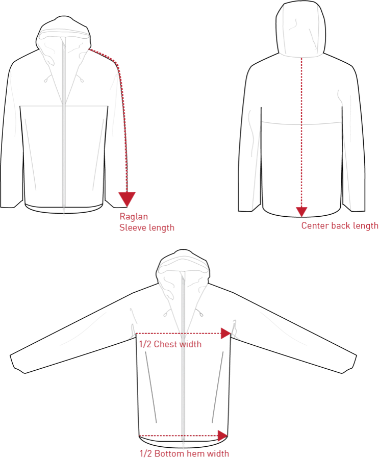 ДЛИНА ПО ЦЕНТРУ СПИНЫ (CENTER BACK LENGTH): Измерьте расстояние от середины выреза горловины до нижнего края по центру спины.Size XS S M L XL XXL 1/2 CHEST 53 cm 56 cm 59 cm 62 cm 65 cm 68 cm 1/2 BOTTOM HEM WIDTH 50 cm 53 cm 56 cm 59 cm 62 cm 65 cm RAGLAN SLEEVE LENGTH 78 cm 79 cm 80 cm 81 cm 82 cm 83 cm CENTER BACK LENGTH 73 cm 74 cm 75 cm 76 cm 77 cm 78 cm -